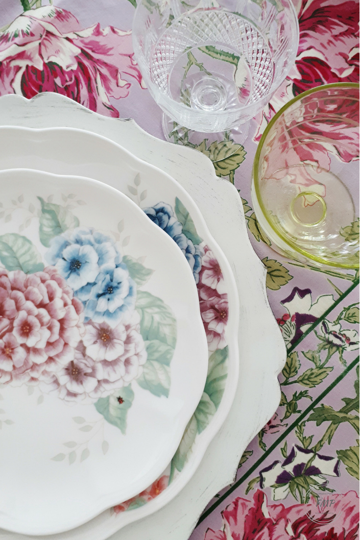 The napkins are also from April Cornell in Rose Nouveau Orchid pattern.